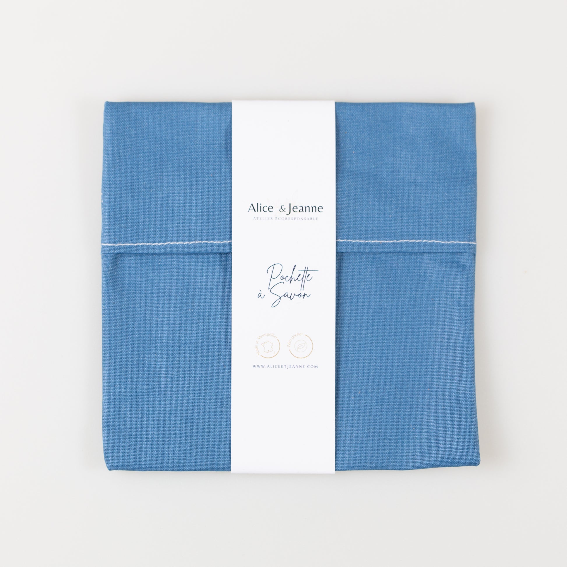Transportez facilement vos savons, shampoings et autres soins solides zéro déchet grâce à cette pochette en coton enduit. Cousue main à Montpellier, cette pochette imperméable nomade vous accompagnera partout.